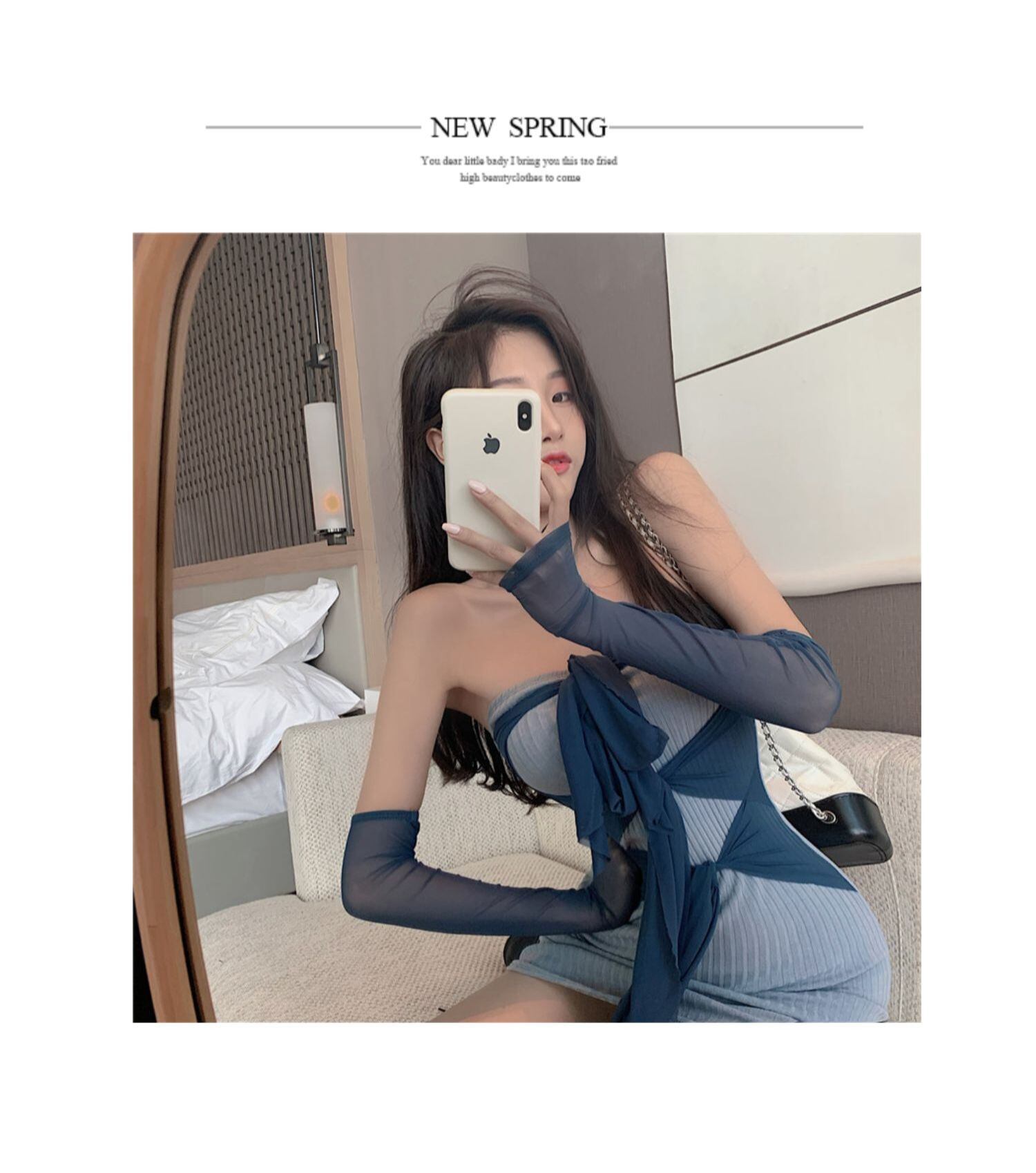 スモールネットガーゼ長袖チューブトップドレスレディース秋セクシーバッグヒップスカート2020新気質スカート ブラックストロベリース41805107426