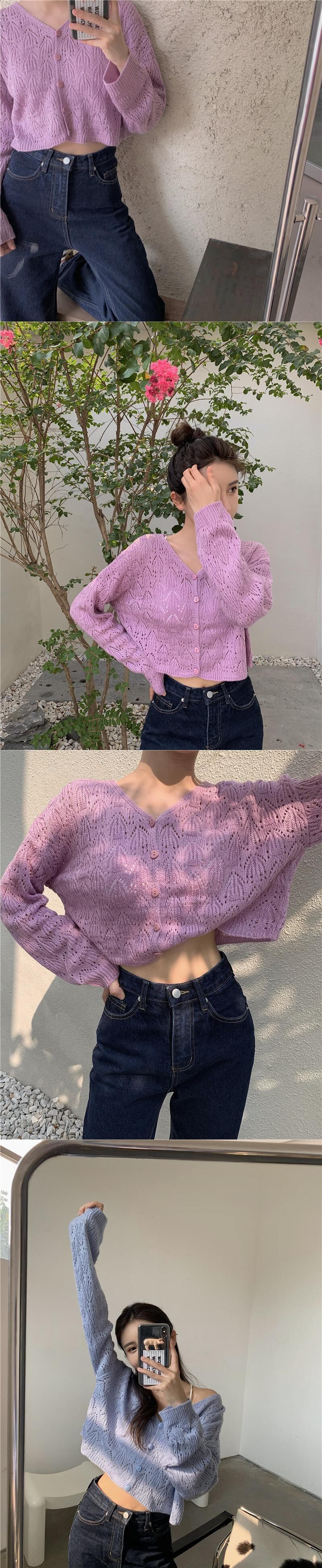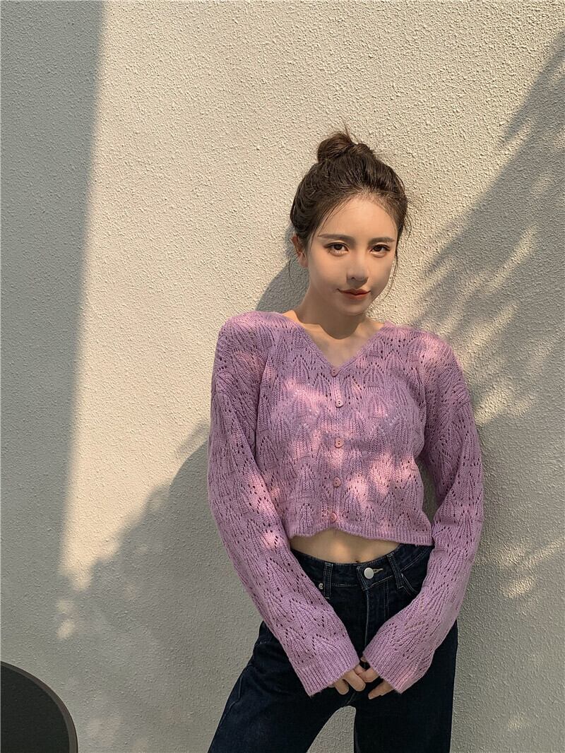 モヘアホローニットスモールカーディガンレディース秋新作ルーズレイジースタイルセーターコート長袖ショートトップ ブラックストロベリース27182055673