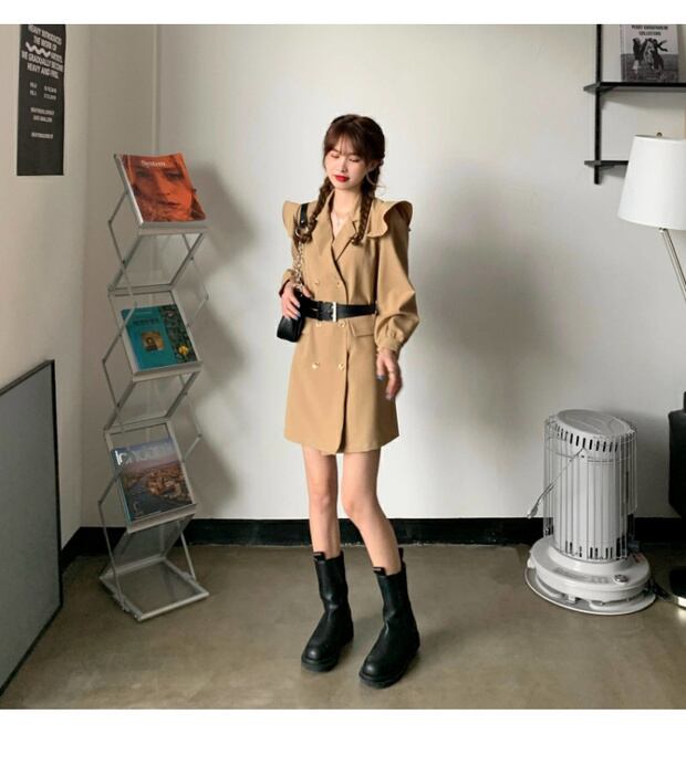 黒のスーツ襟ダブルブレストドレス女性秋スリムスリム長袖ショートスカート2020新気質スカート ブラックストロベリース10980250870