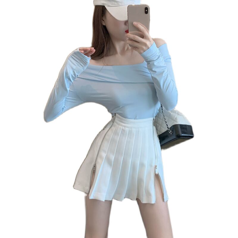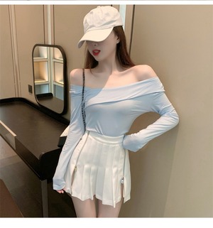 ワンショルダーショートタイトフィットセクシー長袖Tシャツレディース2020年秋新作インナーボトミングシャツブルートップ ブラックストロベリース70854340317