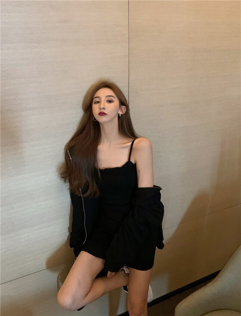 色:コーヒー色のドレス,ブラックサスペンダースカート,グレーコート,黒いジャケット