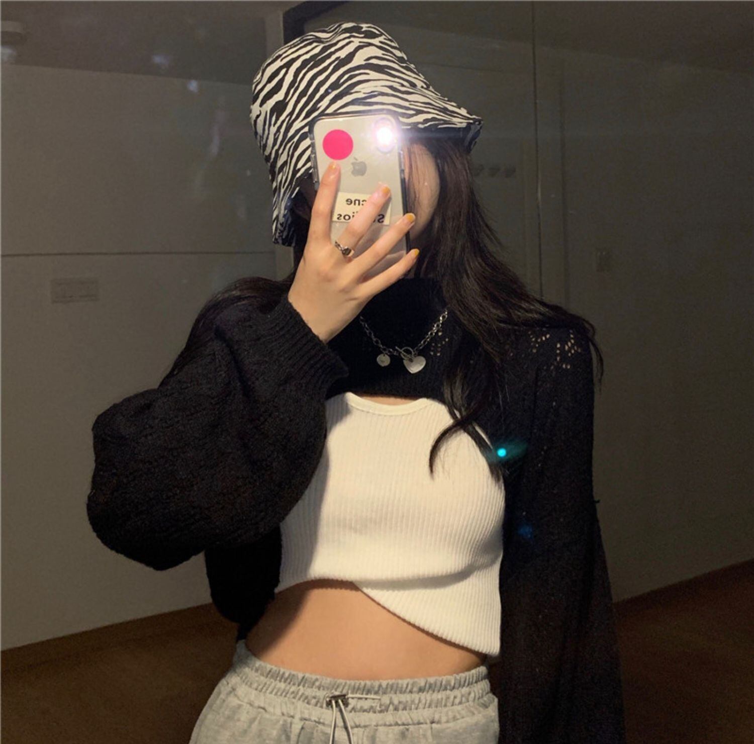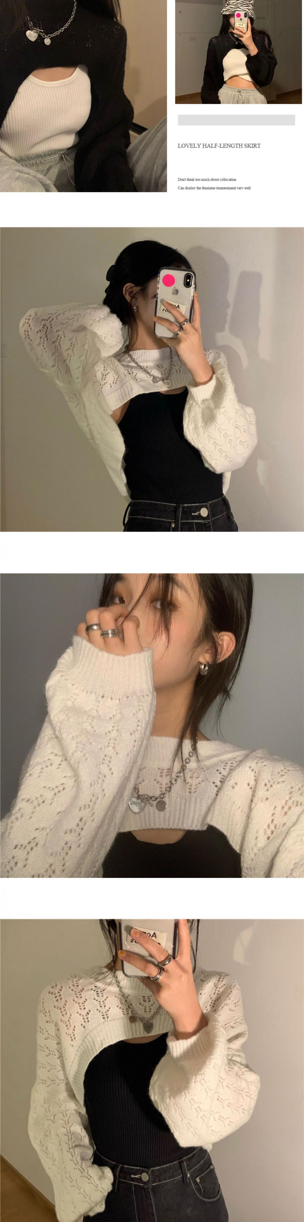 長袖の白いルーズセータートップスの女性の短いブラウスと中空プルオーバー秋の洋風バージョン ブラックストロベリース54990901614