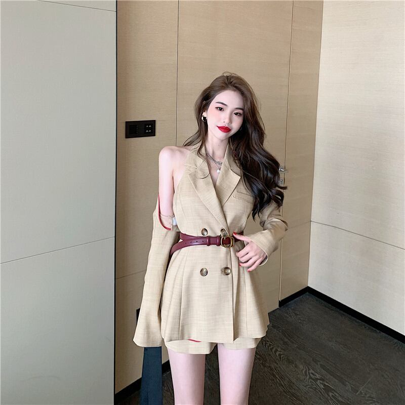 スーツカラーベストドレスレディース春秋ノースリーブAラインショートスカート2020新気性インナーベーススカート ブラックストロベリース71478031465