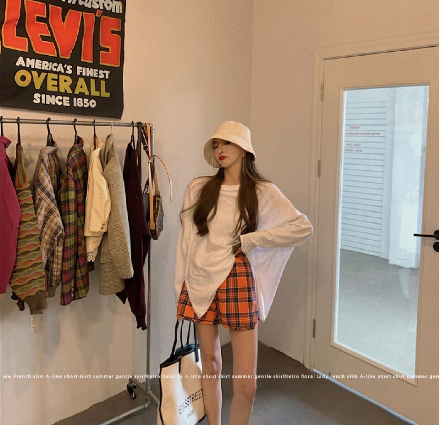 色:ホワイトT,チェック柄パンツ