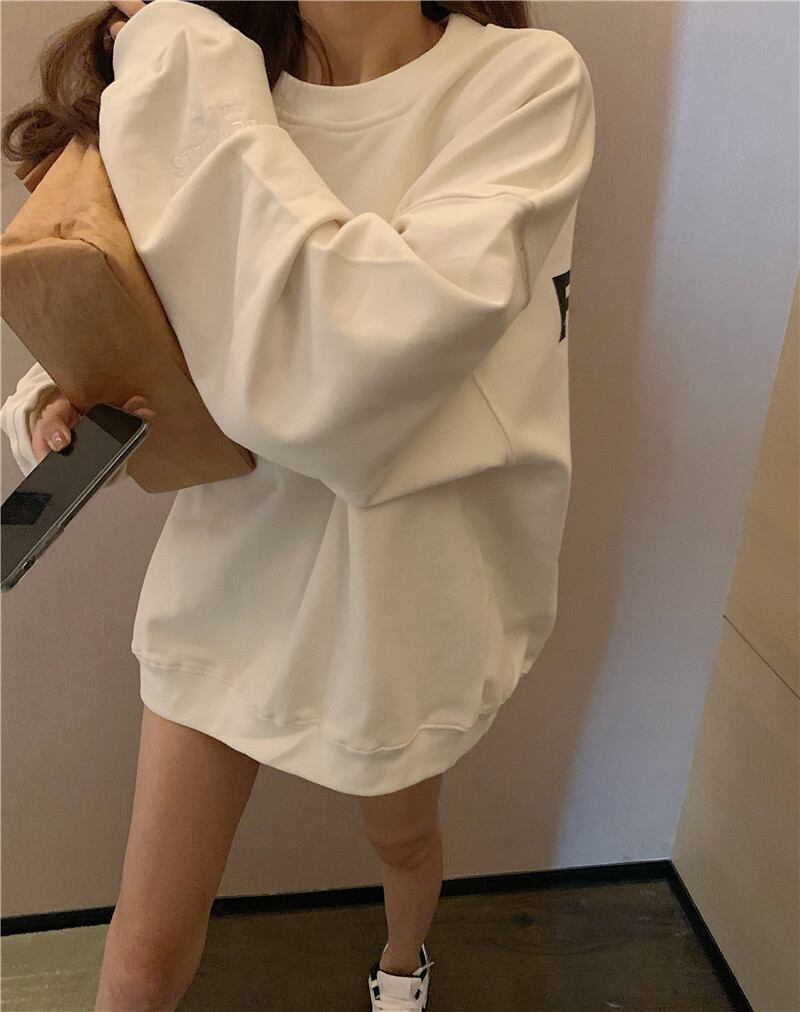 ミッドレングスレイジースタイルホワイトプリント長袖セーターレディース2020年秋ニューイントレンドルーズトップ ブラックストロベリース79837239778