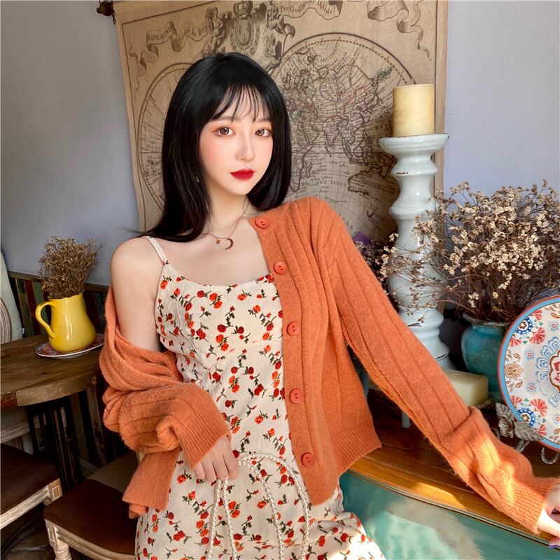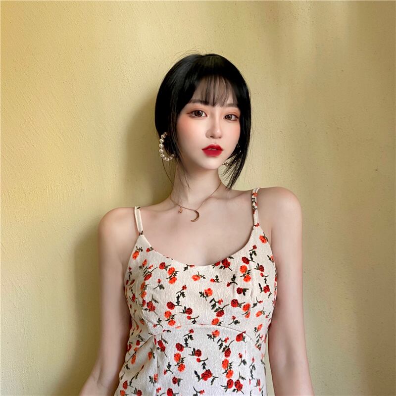 フランスのレトロな花柄ミドル丈サスペンダードレス女性2020秋新しい穏やかな風と薄いフィッシュテールスカート ブラックストロベリース14148140274