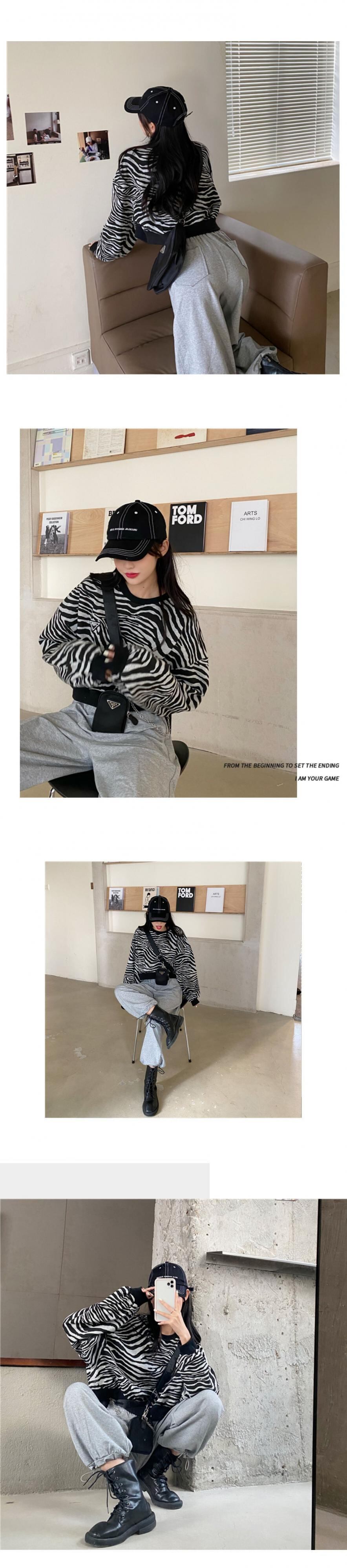 ゼブラ柄ショートセーターレディース2020年秋新作ルーズスタイルハイウエスト長袖ジャケットトップインタイド ブラックストロベリース39128271193