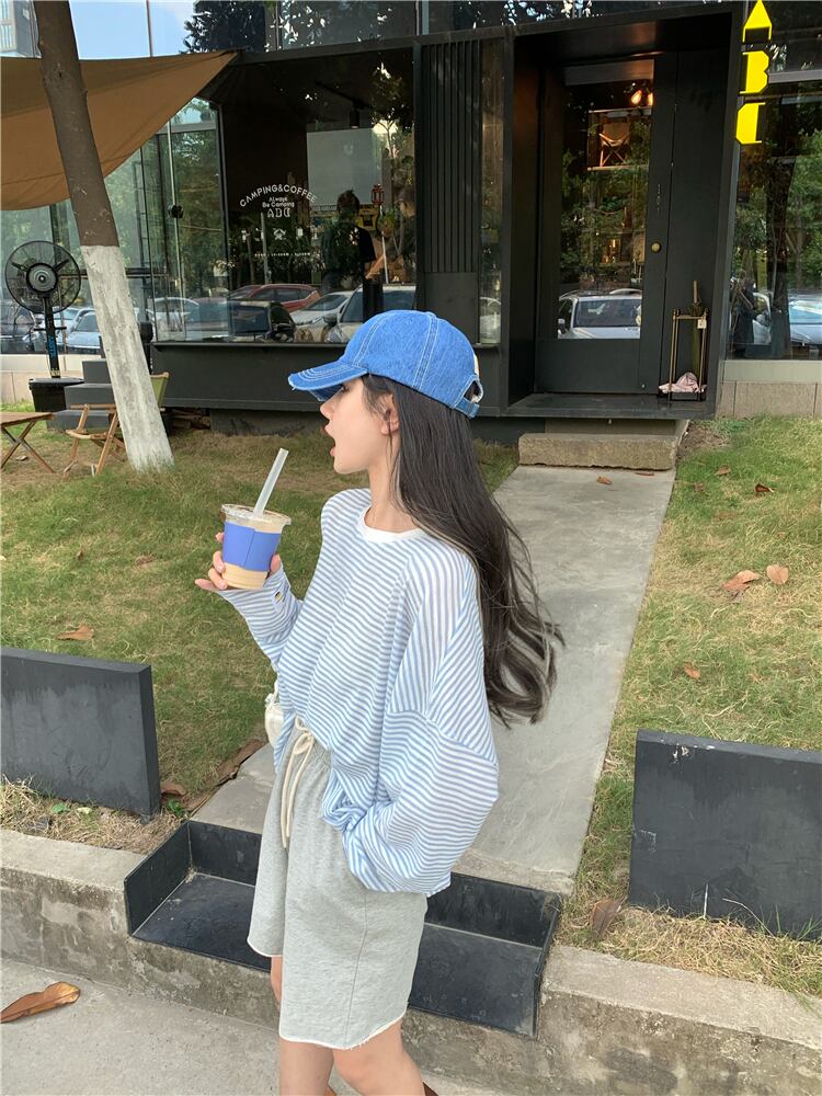 スタイル年齢を減らすウエスタンスタイルのルーズストライプ長袖Tシャツ女性2020年秋新イントレンド学生シャツ ブラックストロベリース12385324425