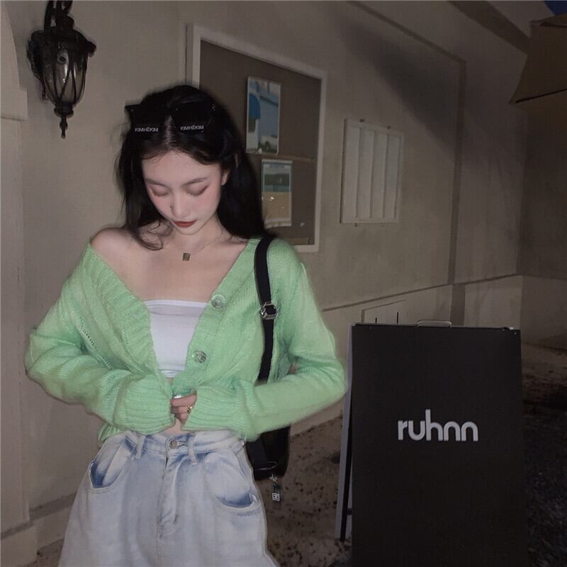やさしい風ショートスモールカーディガンジャケットレディース2020年秋新作セータールーズ長袖セータートップ ブラックストロベリース52284415759