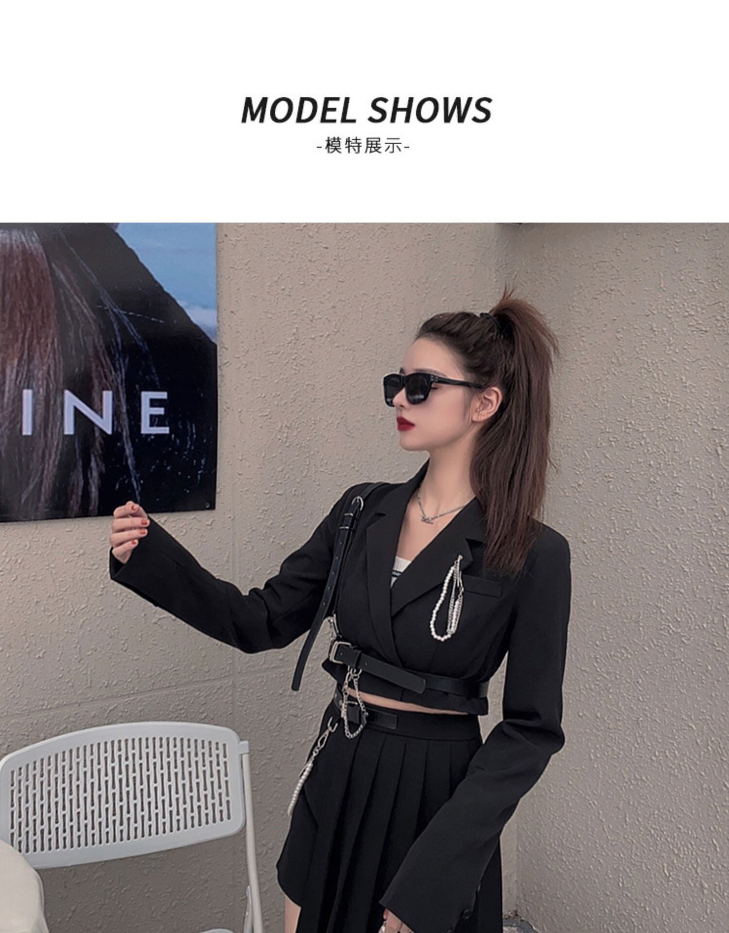 揚げストリート年齢削減ファッションスーツ女性の2020年秋新しい小さなスーツjkプリーツスカートツーピース ブラックストロベリース30772308271