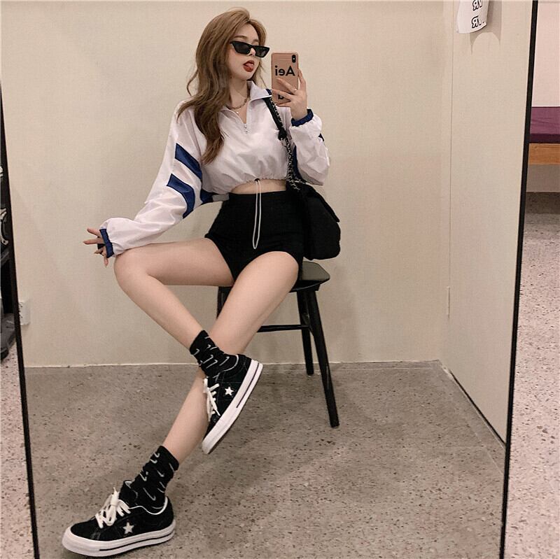 ホワイトカジュアルスポーツ長袖薄手のスモールコートレディース2020年秋新作ルーズショートコートインタイド ブラックストロベリース5895560615