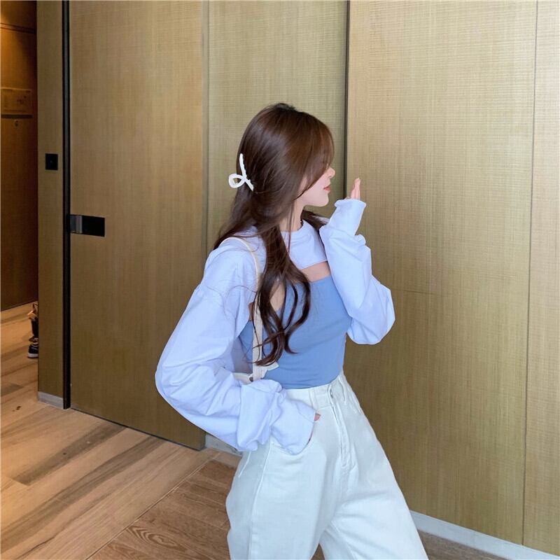超短白長袖セーターブラウスレディース2020秋新潮デザインセンスバージョンのワイルドトップ ブラックストロベリース34008827344