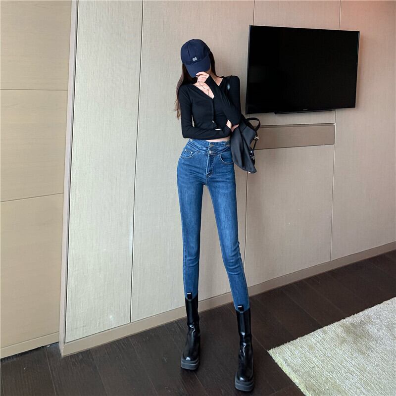 ウエストスリムタイトストレッチダークジーンズレディース2020秋新作パンツカジュアルフィートペンシルパンツ ブラックストロベリース58787108842