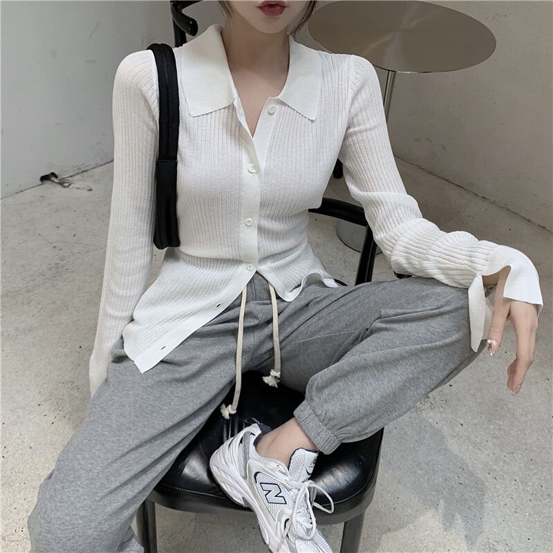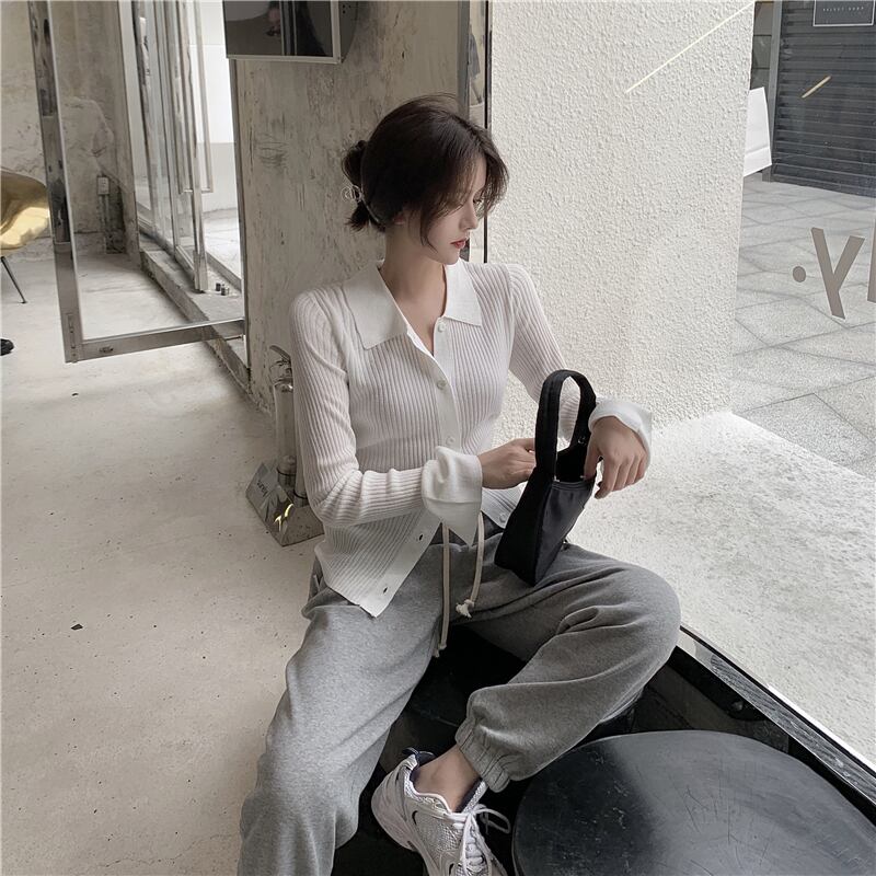 ラペルソフトワックスホワイトニットスモールカーディガンレディース秋ルーズ長袖セータージャケット2020新作アウタージャケット ブラックストロベリース24604375048