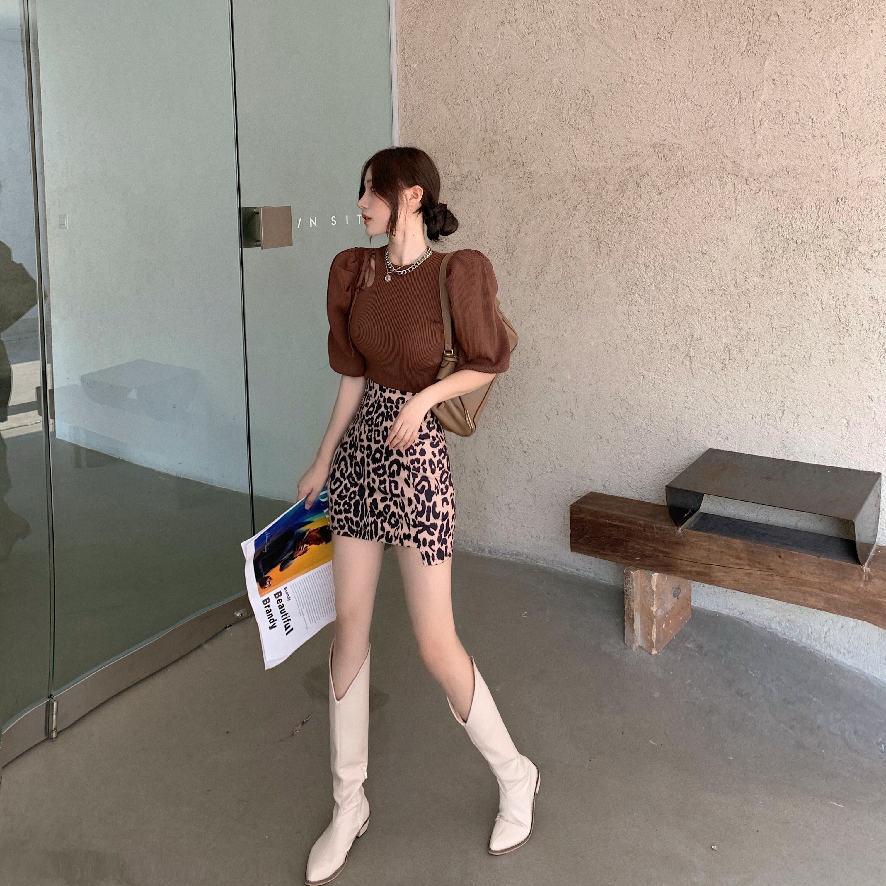 色:アプリコットトップ,モカトップ,ヒョウ柄スカート