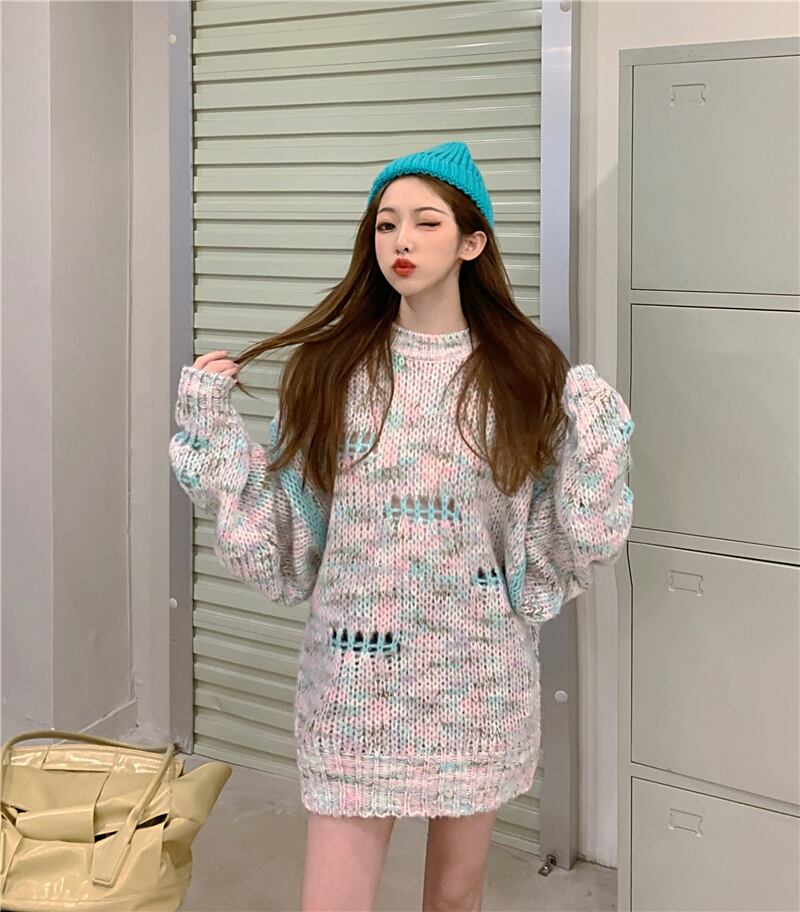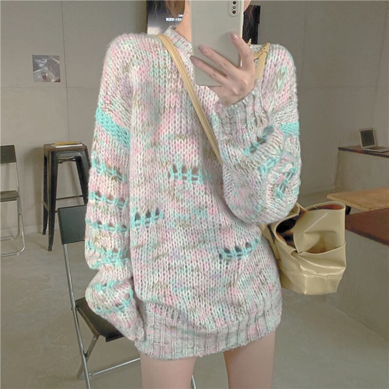 センスホール、中空ルーズアウターウェアセーター女性2020秋冬新イントレンドプルオーバーセータートップ ブラックストロベリース44440241675