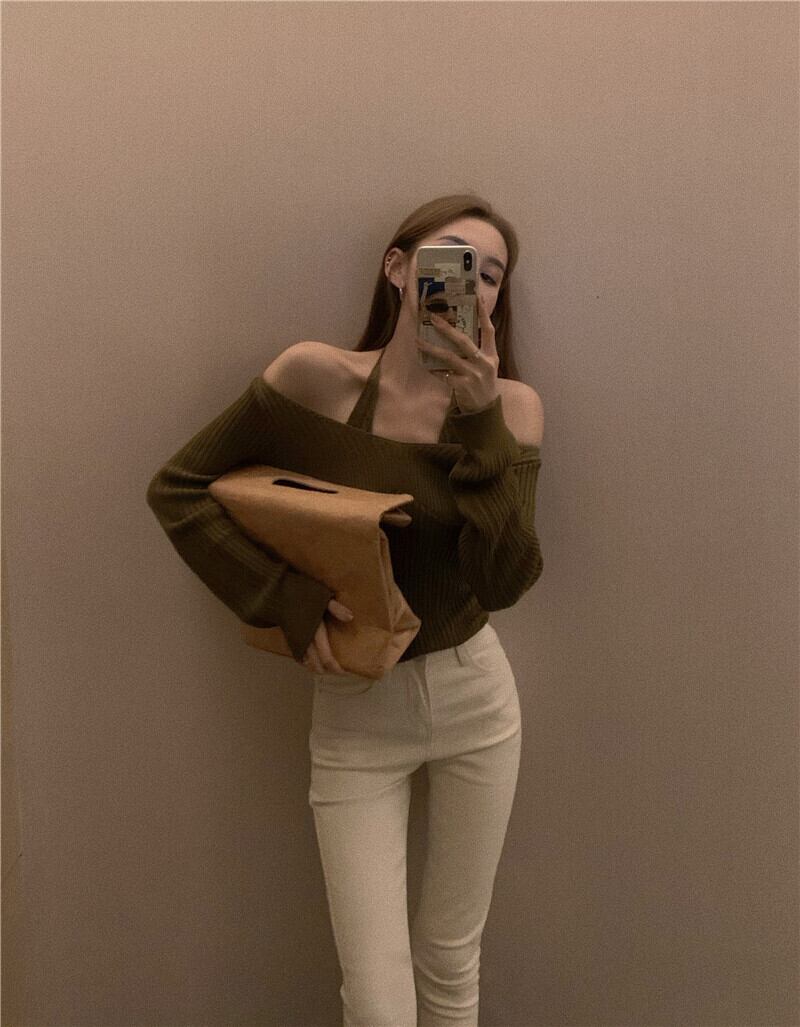 フェイクツーピースステッチスリム長袖セータートップレディース2020秋新デザインセンスニッチプルオーバーセーター ブラックストロベリース634440471