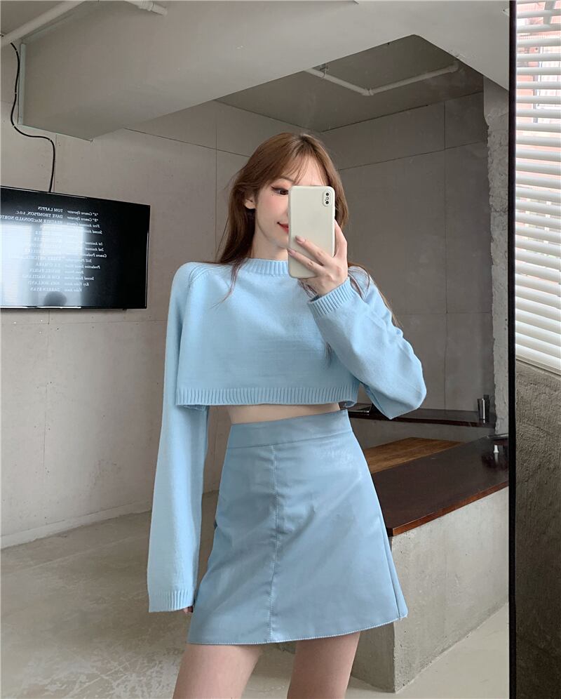 色:青いスカート,ピンクのスカート,黒スカート,青いセーター,黒いセーター,白いセーター
