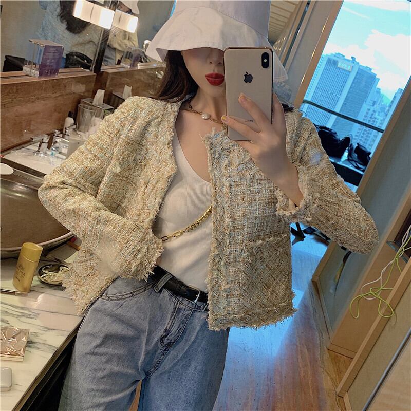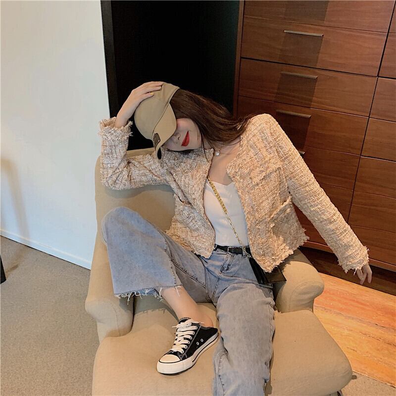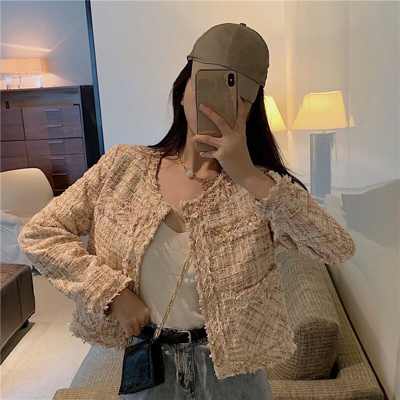 レトロな香港スタイルのツイードショート気質スモールジャケットレディース2020年秋新しいルーズカジュアルオールマッチジャケット ブラックストロベリース43936589720