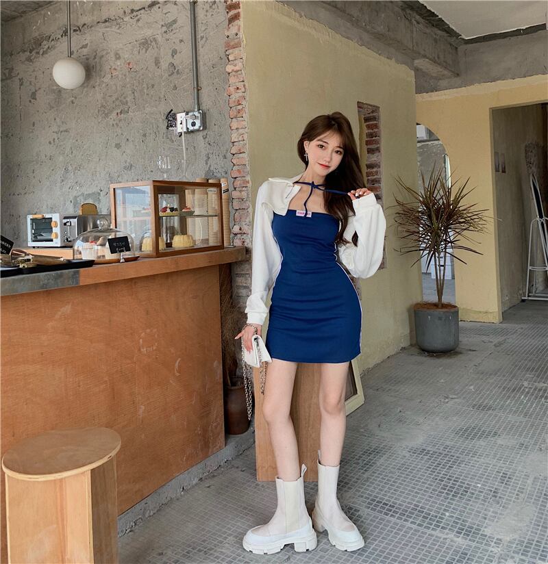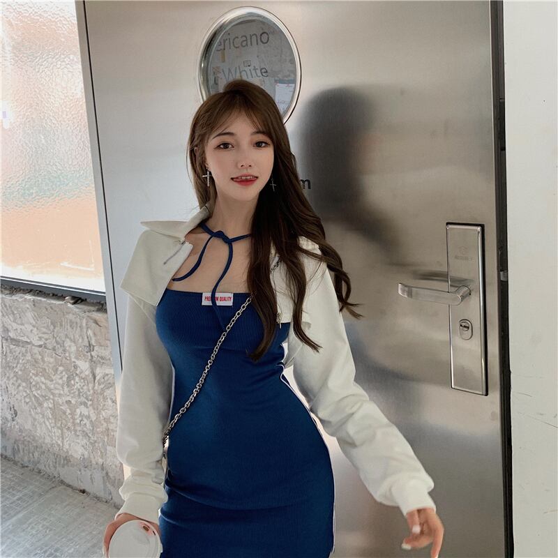 ジャケットブラウスニットバッグヒップサスペンダードレスツーピース女性2020年秋新しい洋風スーツ ブラックストロベリース89917453852