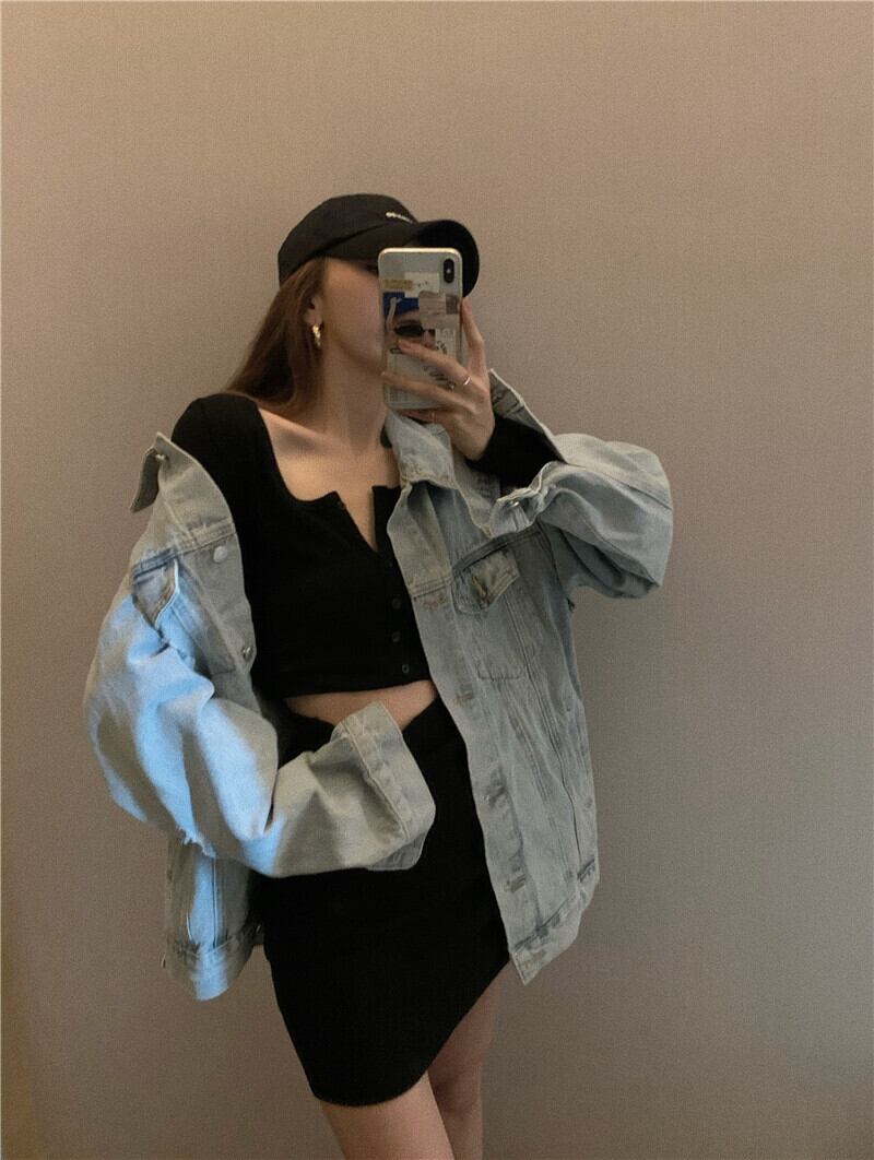 ショートトップハイウエストバッグヒップスカートツーピーススーツ+デニムジャケット女性2020年秋新気性ロイヤルシスタースーツ ブラックストロベリース78001486158