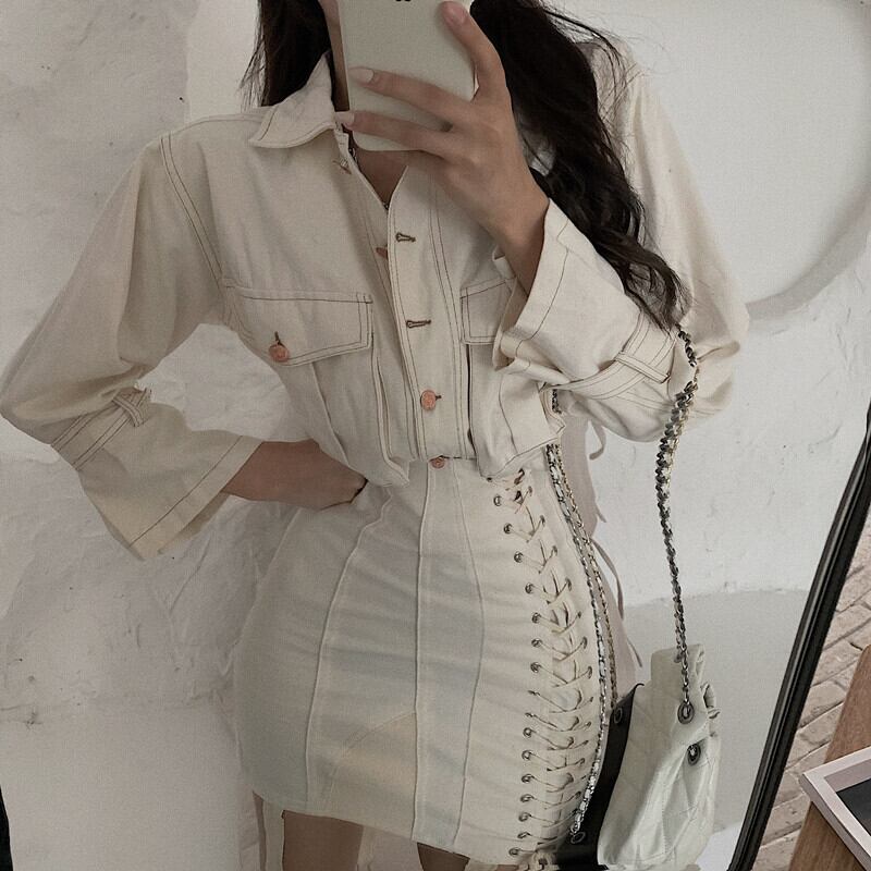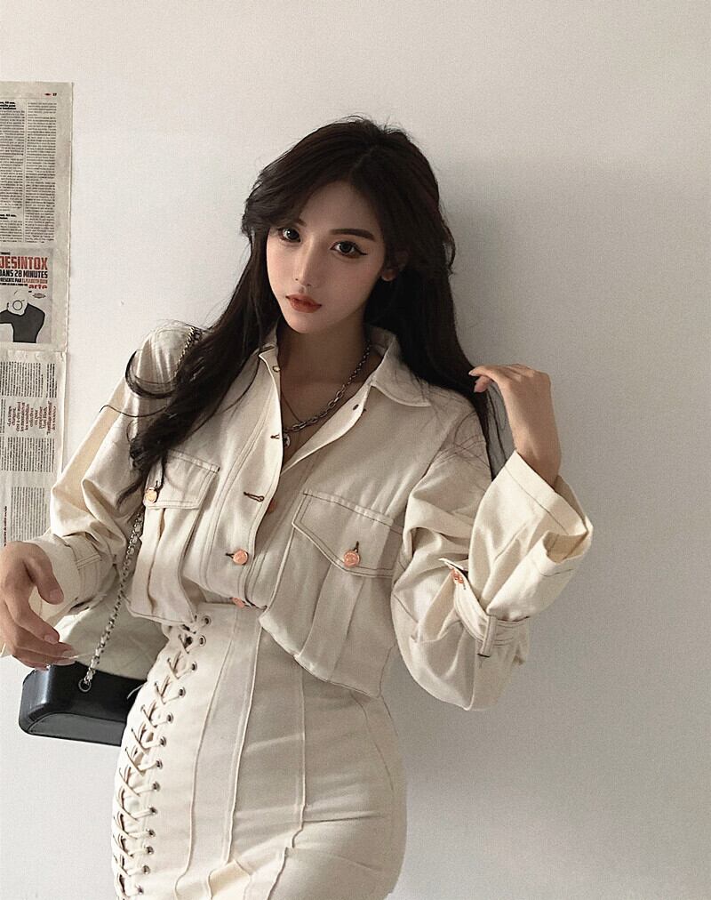 気質ファッションジャケットハイウエストバッグヒップスカート女性2020秋新作スーツウエスタンセレブスタイルツーピーススーツ ブラックストロベリース94291248143