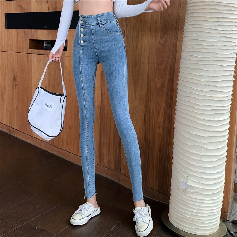 -ウエストローエッジペンシルジーンズレディース2020年秋新しいスリムスキニーストレッチパンツカジュアルフットパンツ ブラックストロベリース58577182666