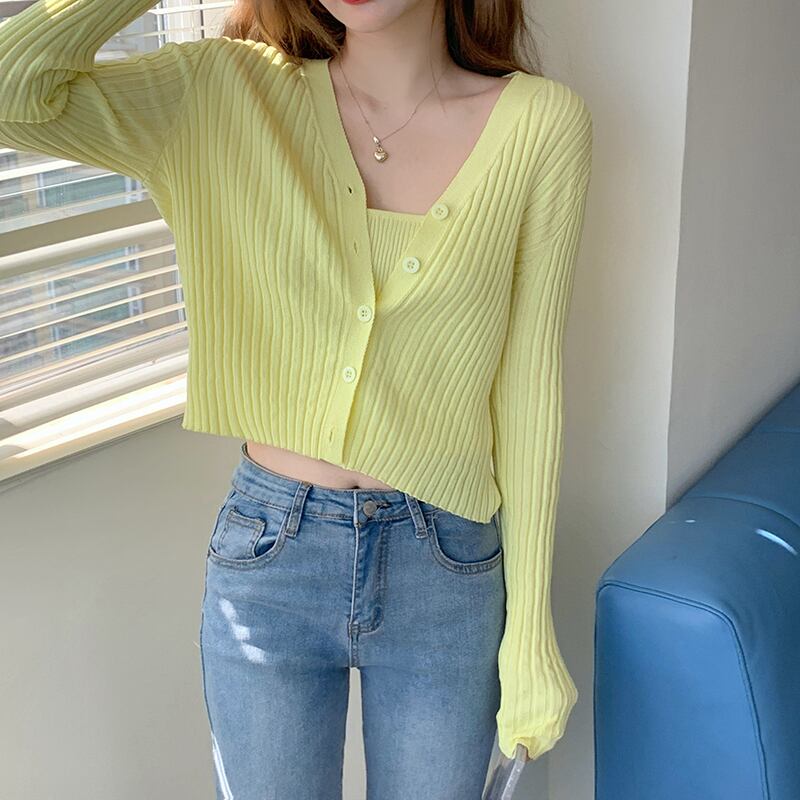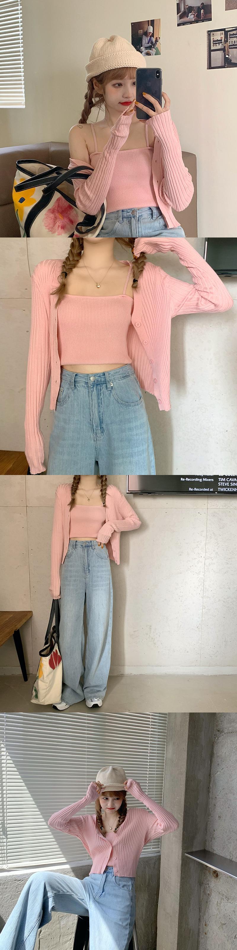 bmウィンドピンクショート長袖カーディガンジャケットレディース2020年秋新作スリムVネックセーターニットトップス ブラックストロベリース64970016218