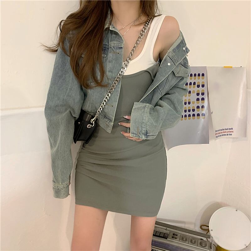 ショートヴィンテージルーズデニムジャケットレディース2020秋新作オールマッチレトロ香港カジュアルジャケット ブラックストロベリース21862876393