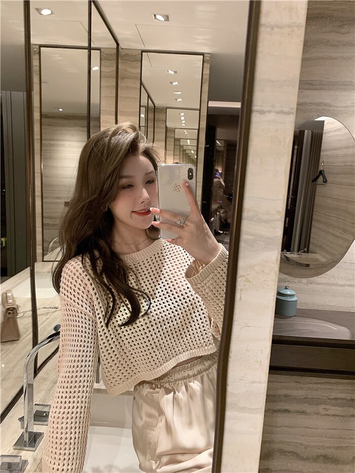オールマッチショートホロールーズアウタープルオーバーセーターレディース2020秋ニュースタイルウエスタンスタイルセータートップ ブラックストロベリース68112495189