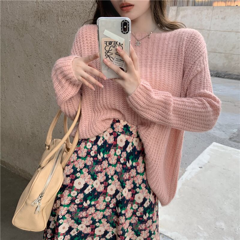 ピンクの中空ニットセーターレディース秋新しいルーズレイジースタイル長袖セータージャケットアウターウェアプルオーバートップ ブラックストロベリース92915206722