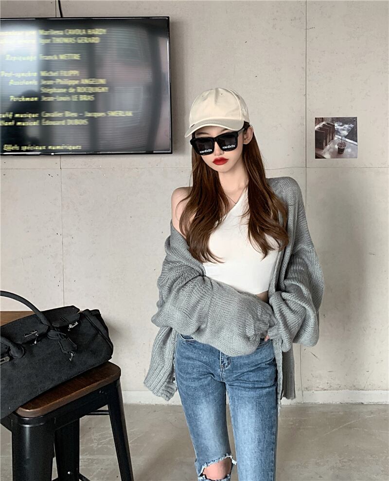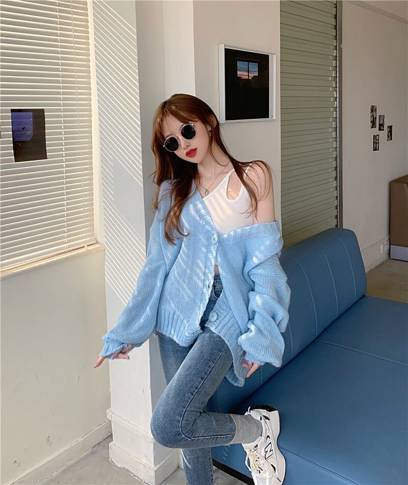 Vネックモヘア怠惰な長袖ニットセータートップ女性2020年秋新しいルーズセーターカーディガンジャケット ブラックストロベリース98053054736
