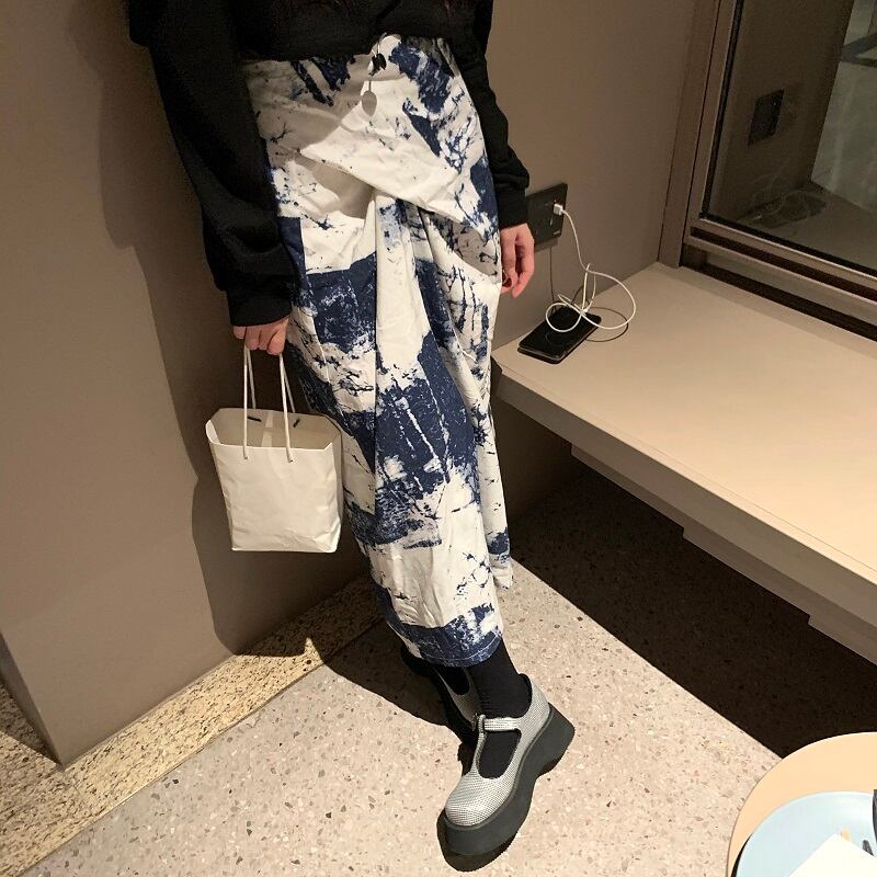 スタイルデザインセンスニッチ絞り染めミドル丈スカート女性2020年秋新作ハイウエストスリムオールマッチスカート ブラックストロベリース72096596979