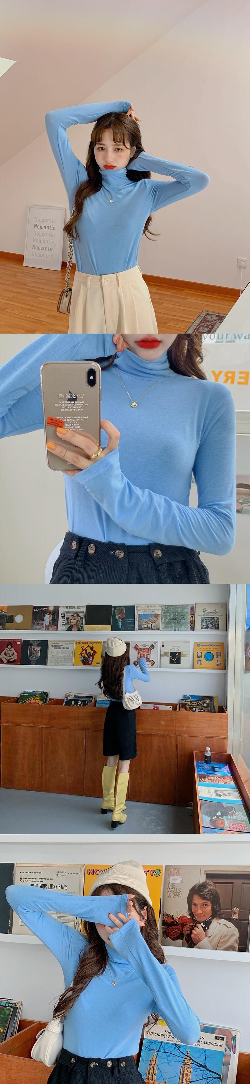 タイトフィットストレッチハイネックホワイトTシャツレディース秋スリムスリミング長袖ボトミングシャツ2020ニューインナートップ ブラックストロベリース47624619099