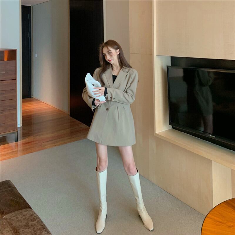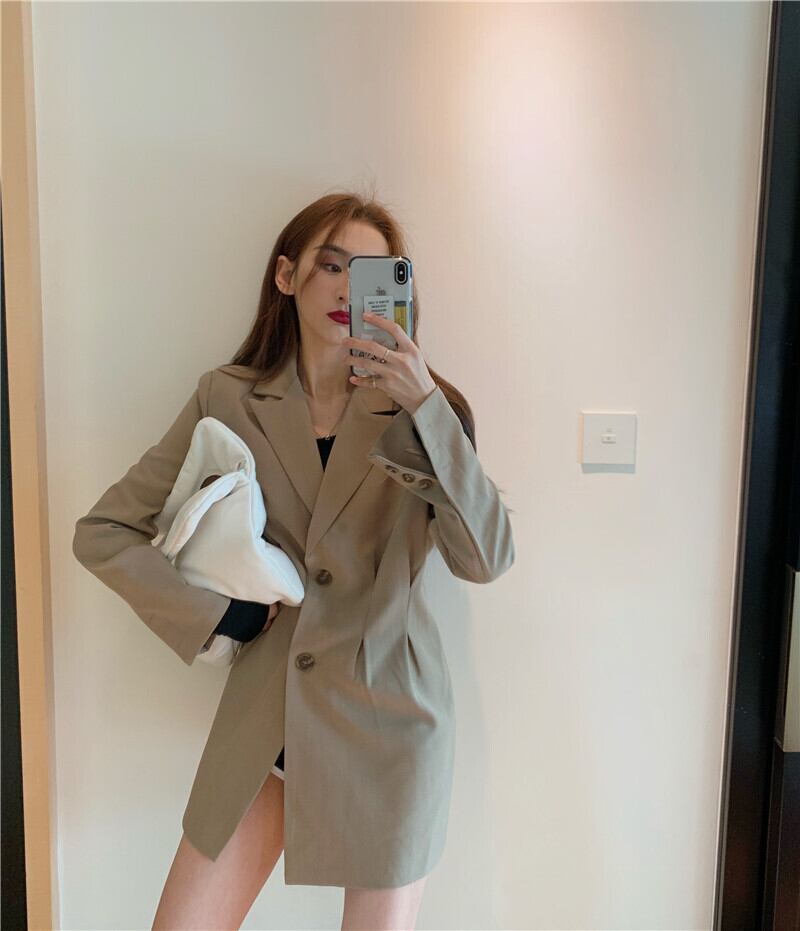 英国スタイルの黒の小さなスーツの女性の秋のスタイルのスーツドレス2020新しいミドル丈のトップコート ブラックストロベリース3593234575