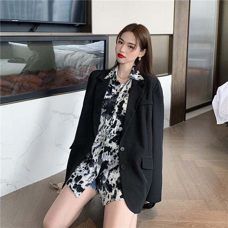 ミッドレングスブラックルーズスタイルスモールスーツジャケットレディース2020年秋ニューブリティッシュスタイルオールマッチスーツジャケット ブラックストロベリース70563592043