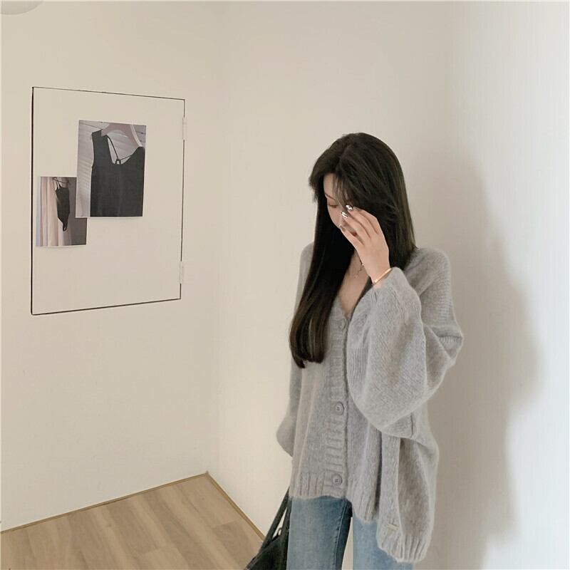 優しい風グレーニットカーディガンレディース秋冬ルーズで怠惰な長袖セータージャケット2020新しいアウタージャケット ブラックストロベリース53986082024
