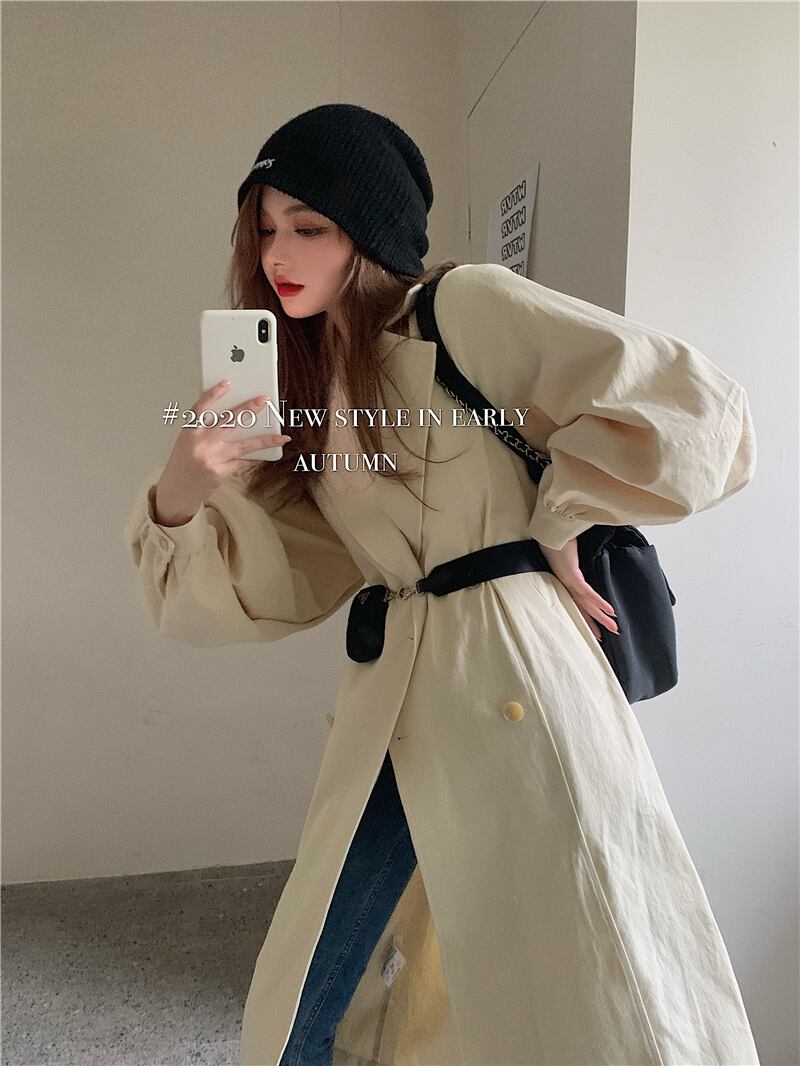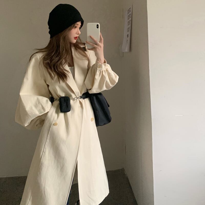 アプリコットスーツカラーウインドブレーカーレディース2020年秋新作ルーズスタイルパフスリーブミドル丈気質コートジャケット ブラックストロベリース28523932018
