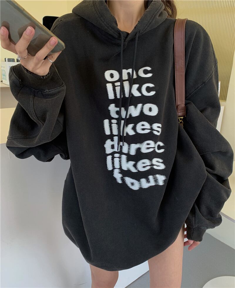 セーターの女性の秋と冬に加えて、ベルベットの厚みのある香港スタイルのシックなミドル丈のイントレンディな黒のルーズフード付きトップス ブラックストロベリース25759056361