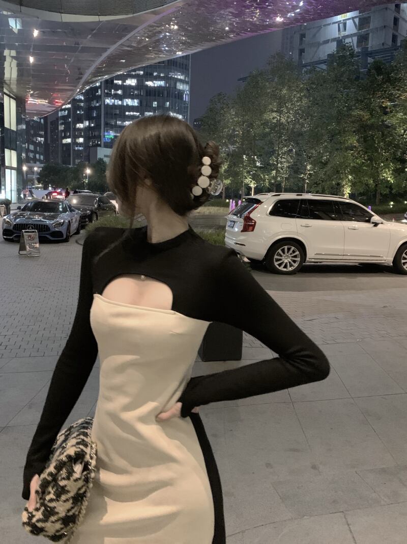 ドレス ロングオータムウィンター 長袖 秋物 冬物 スカート ブラックストロベリース87784622667