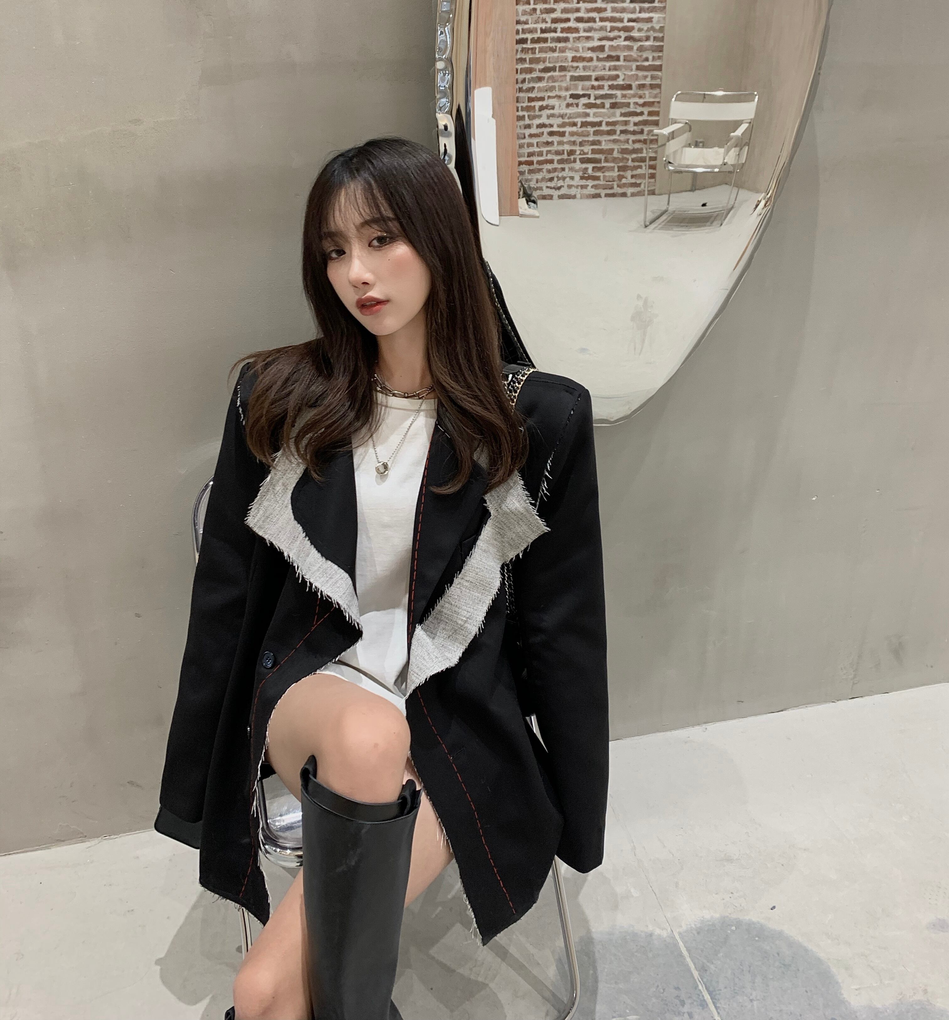 レディーススーツジャケットルーズスタイル2020年秋冬新作ブラックデザインセンスミドル丈カジュアルスモールスーツジャケット ブラックストロベリース93345365195