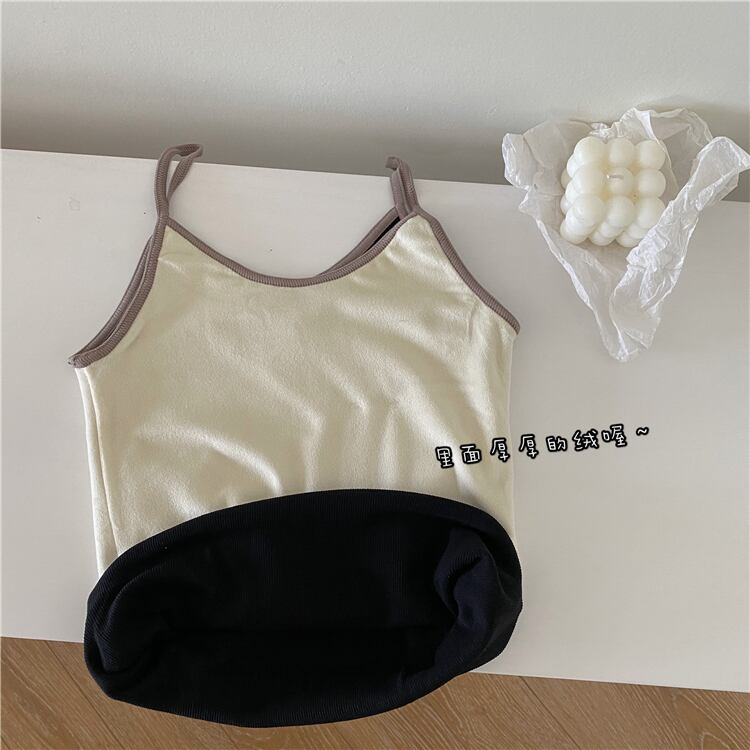 キャミソールの女性の秋と冬の自己栽培の暖かさとベルベットの厚みのある黒のタイトフィットノースリーブトップと美しい背中 ブラックストロベリース71504490185