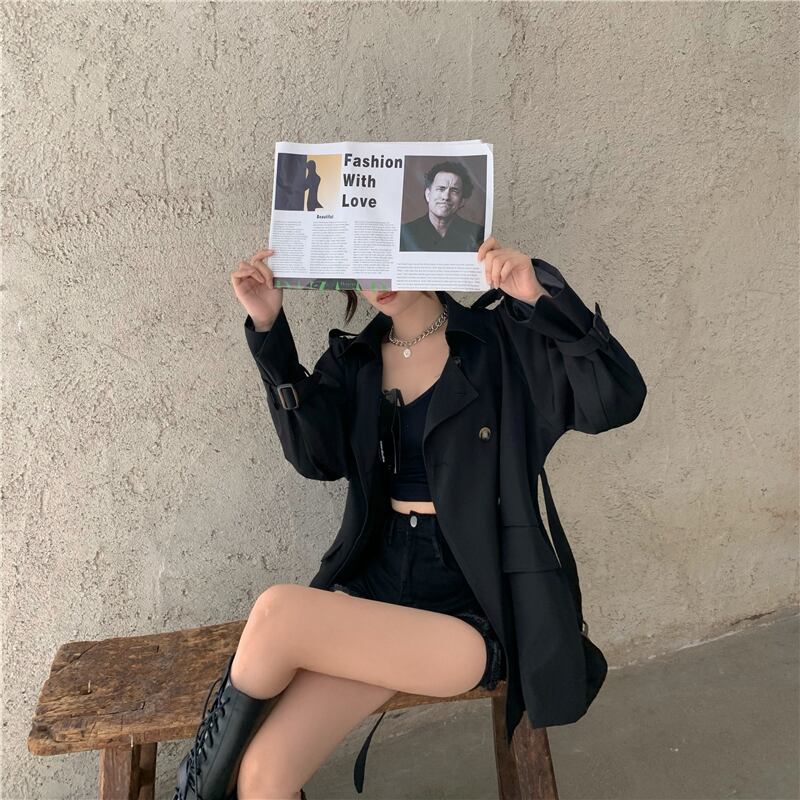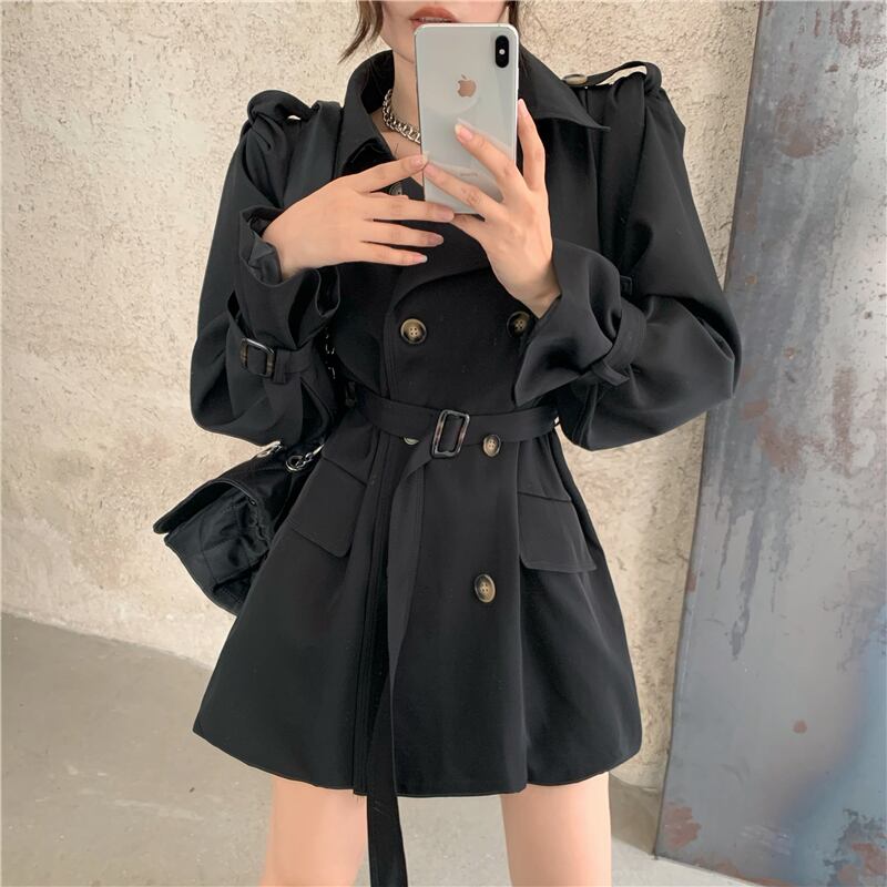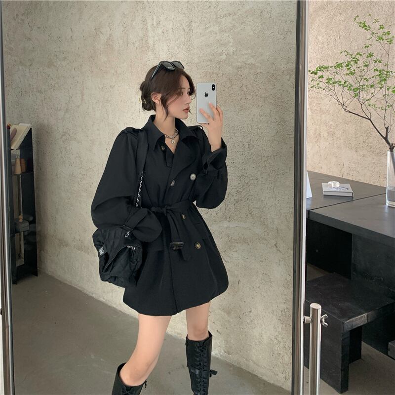 小さなミドル丈の黒の気質のウインドブレーカージャケットの女性2020年秋冬の新しい英国スタイルのオールマッチコート ブラックストロベリース89367099624