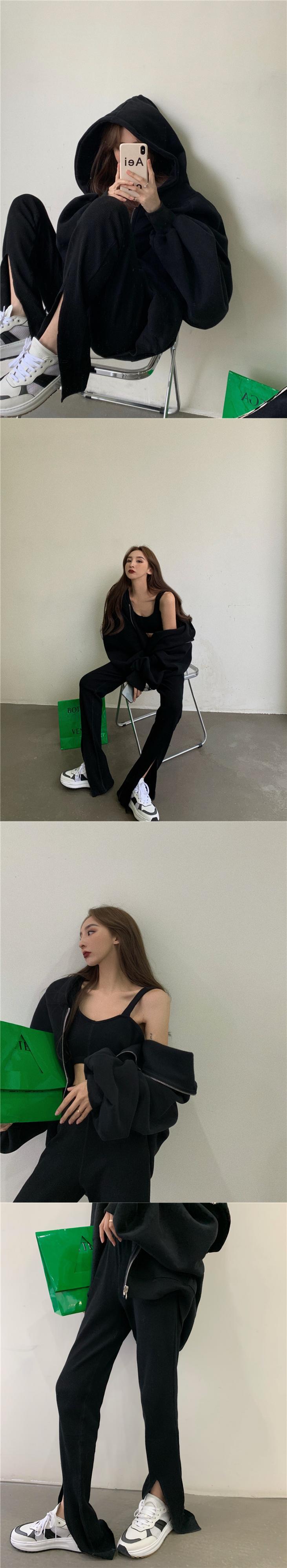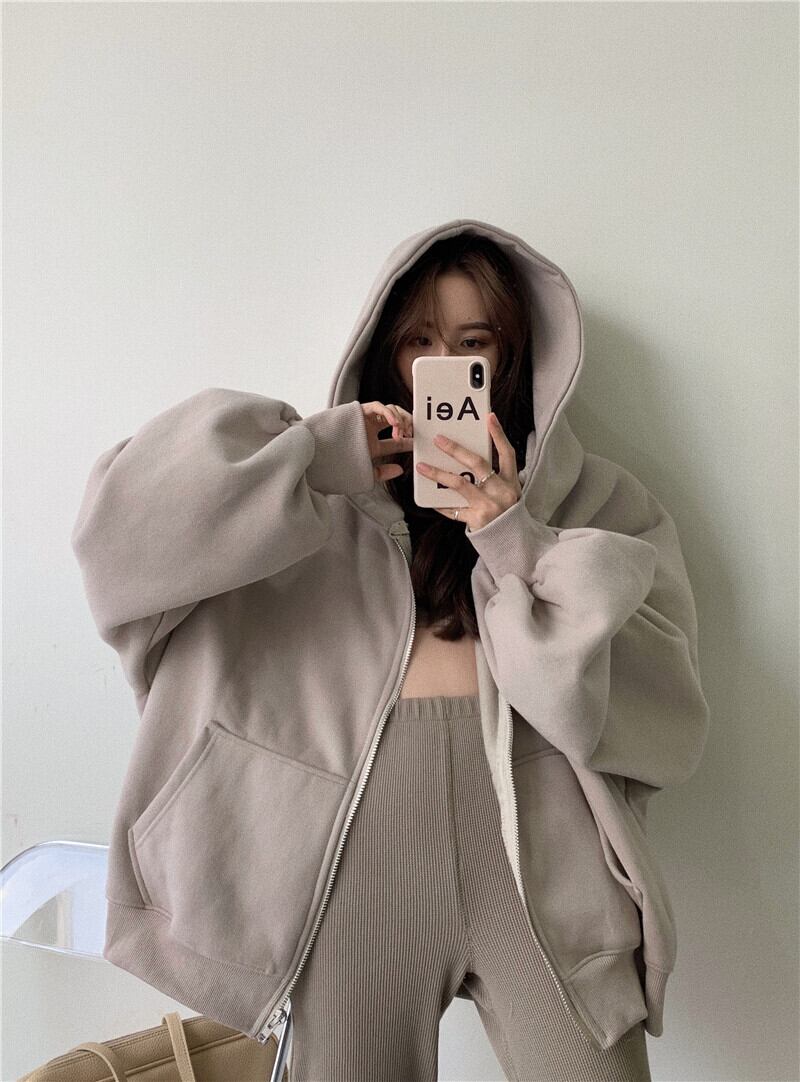 セーター レディースルーズベルベットフードカーディガンジャケット オータムウィンターブラックジッパートップス 秋物 冬物 ブラックストロベリース94856427786