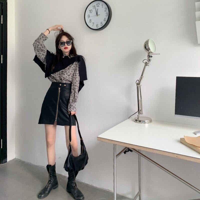 ルーズな香港風味のヒョウ柄の長袖シャツトップ女性のセンスニッチバージョン2020年秋の新しいスリムシャツ ブラックストロベリース96201639324