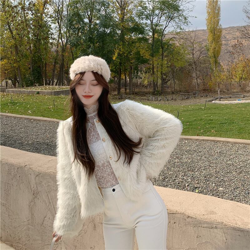 フェイクファーファーオールインワンショートコートレディース秋冬厚手2020ニューコートルーズバージョンぬいぐるみフリーストップ ブラックストロベリース11918508022