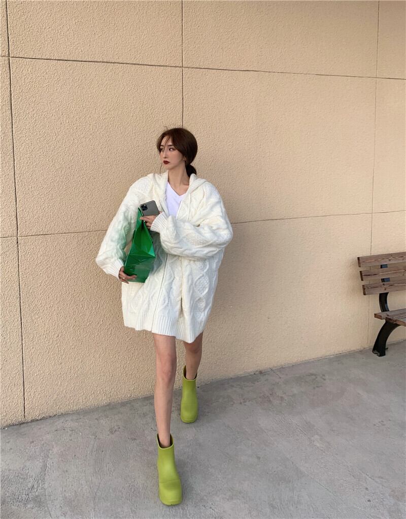 ツイストニットセーターカーディガンジャケットレディース秋冬レトロ香港スタイルジッパーフード付きルーズアウターウェアレイジートップ ブラックストロベリース81575011256