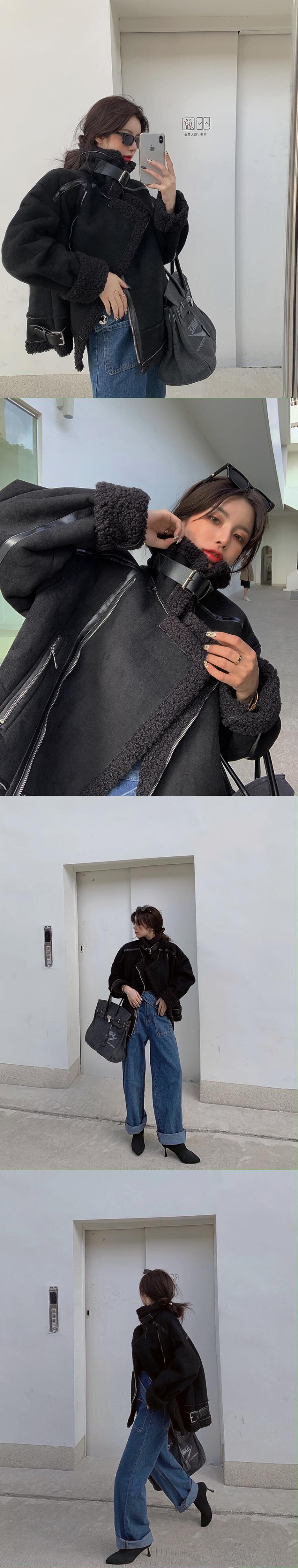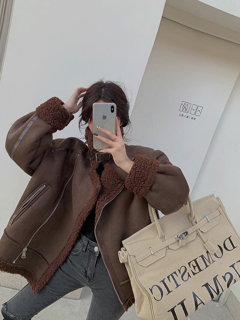 ショートジャケットの女性秋冬ブラックルーズプラスベルベット厚手のジャケット2020新しいファーラムウールトップ ブラックストロベリース11364542143