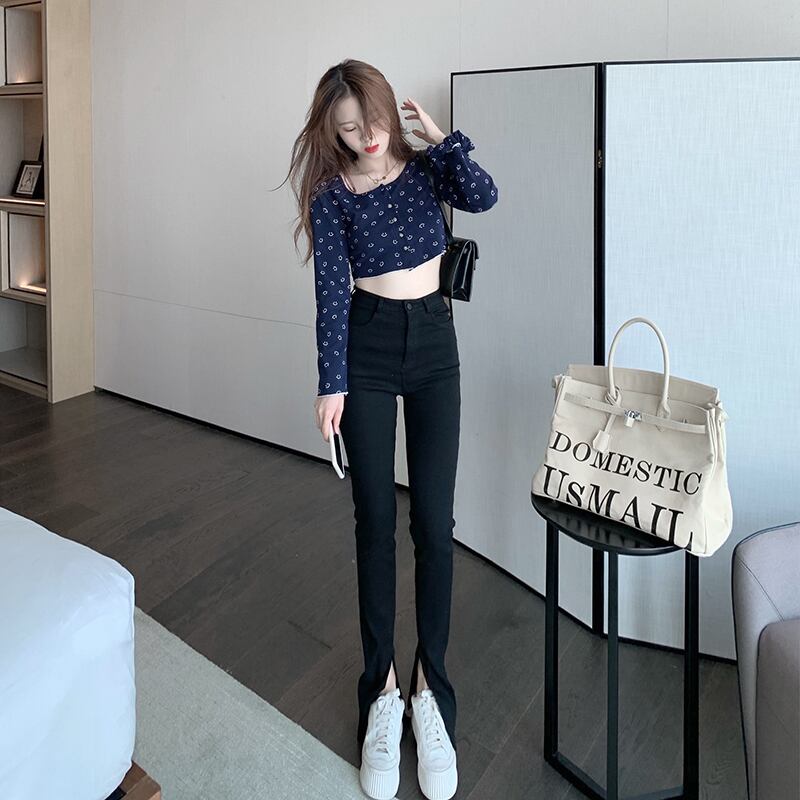 ブラックジーンズ スリムハイウェストオータムウィンターカジュアルパンツ レッド 秋物 冬物 ブラックストロベリース20900552070