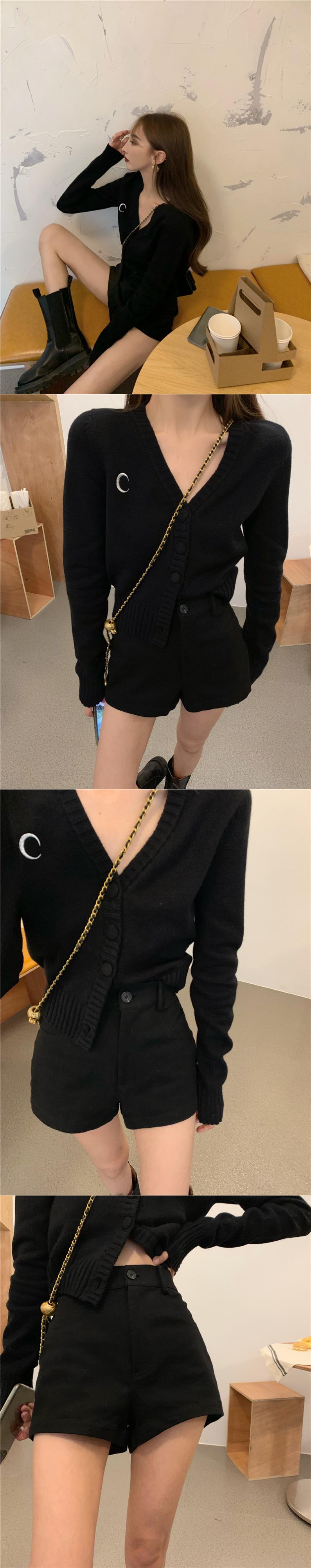 レディースニットセーターショートスリムVネックセータートップス2020秋冬新刺繍ホワイトカーディガンジャケット ブラックストロベリース9832423765